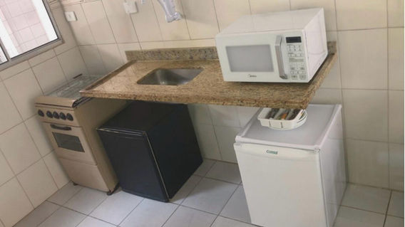 Apartamento com cama casal QUEEN apenas, ar condicionado split, smart TV, microondas, frigobar, sanduicheria, pratos, talhares e copos;